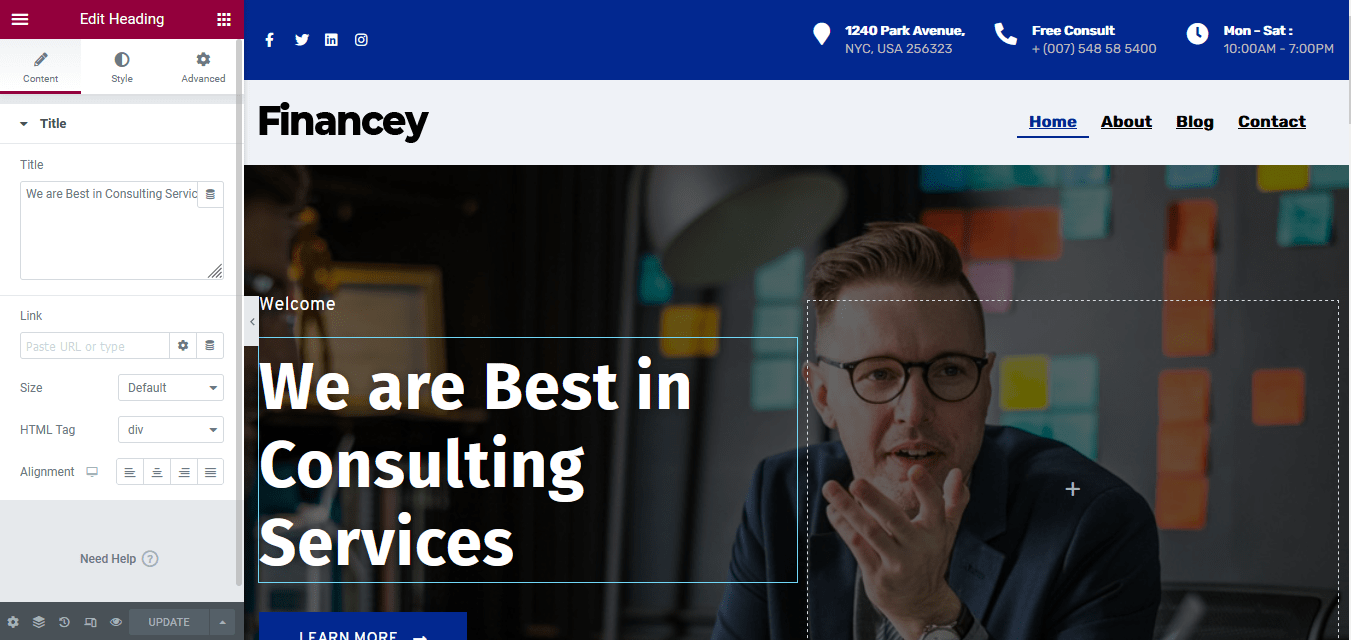 Modify the content, or create your own layouts. It’s all easy with Financey.